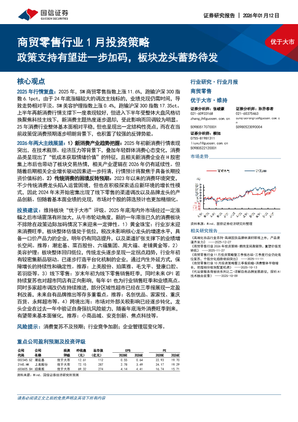 【国信证券】【202601】2026年01月12日 优于大市 商贸零售行业 1月投资策略:政策支持有望进一步加码,板块龙头蓄势待发-15页