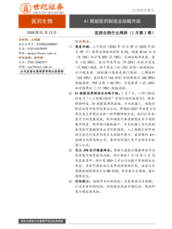 【世纪证券】【202601】AI赋能医药制造业战略升级-8页
