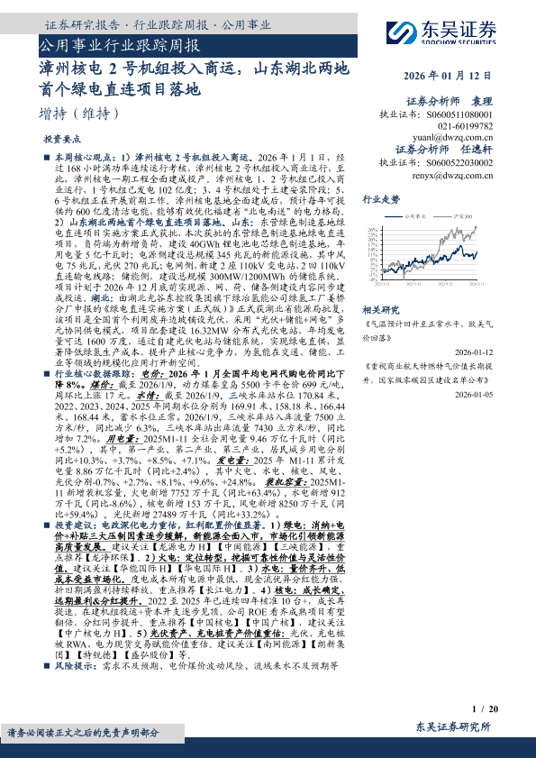 【东吴证券】【202601】漳州核电2号机组投入商运,山东湖北两地首个绿电直连项目落地-20页