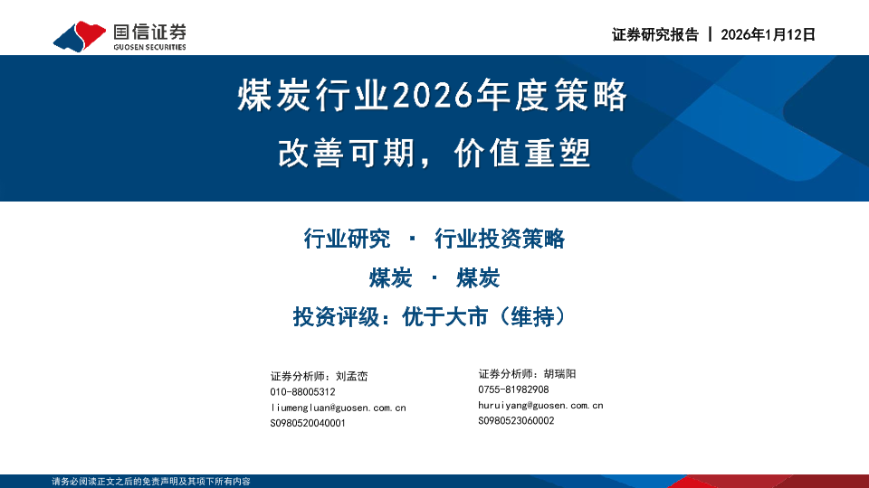 【国信证券】【202601】煤炭行业2026年度策略:改善可期,价值重塑-43页