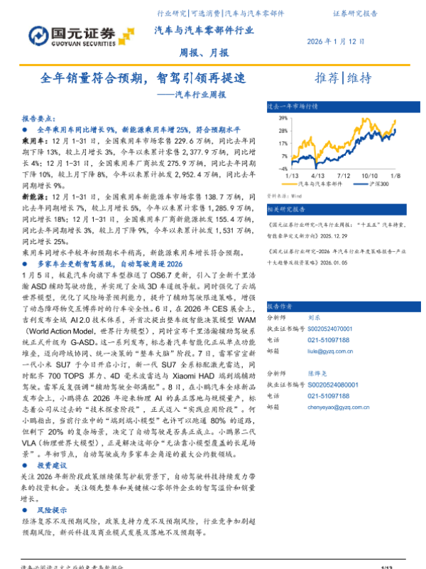 【国元证券】【202601】全年销量符合预期,智驾引领再提速——汽车行业周报-13页