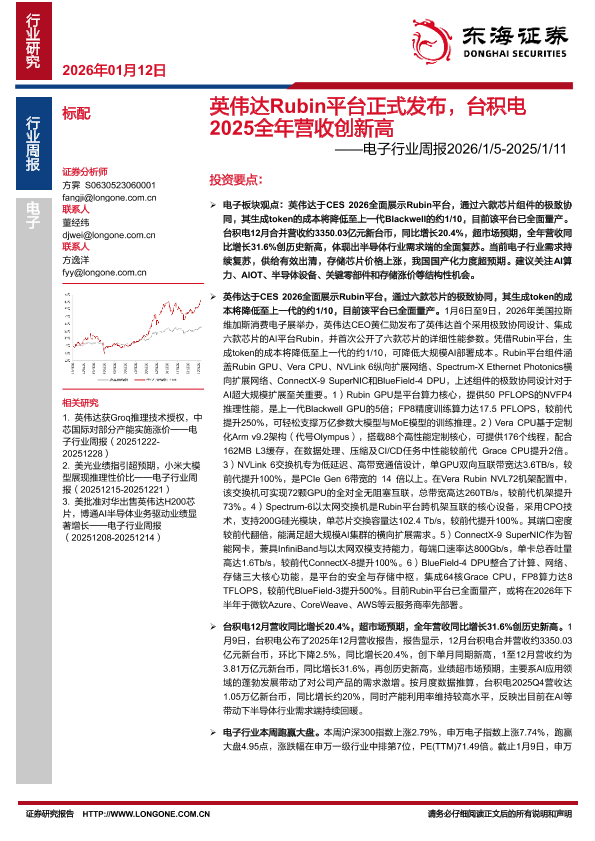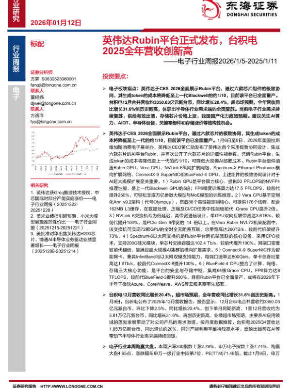 【东海证券】【202601】英伟达 Rubin平台正式发布,台积电 2025全年营收创新高——电子行业周报2026/1/5-2025/1/11-14页