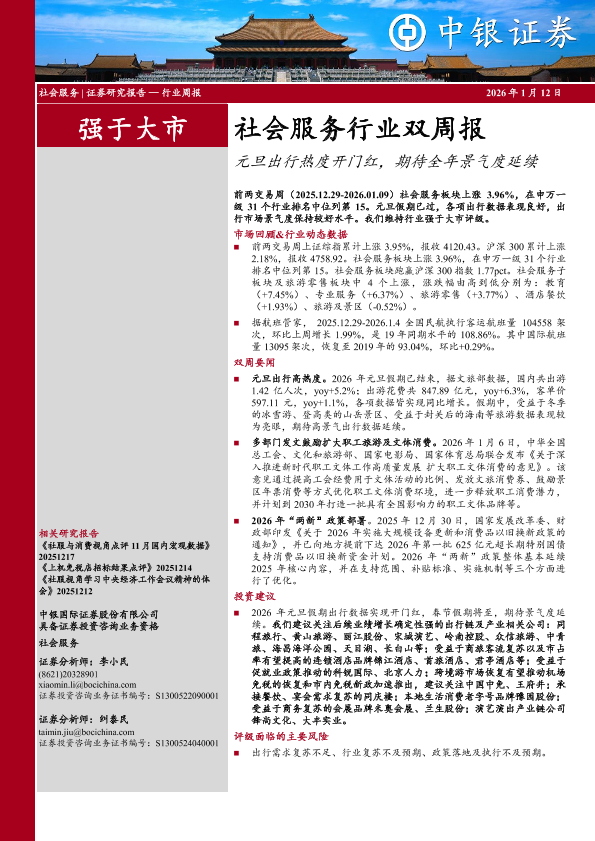 【中银证券】【202601】社会服务行业双周报:元旦出行热度开门红,期待全年景气度延续-14页