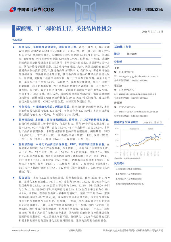 【银河证券】【202601】基础化工行业:碳酸锂、丁二烯价格上行,关注结构性机会-20页
