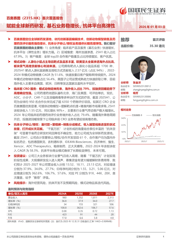 【国联民生证券】【202401】百奥赛图(2315.HK)首次覆盖报告:赋能全球新药研发,基石业务稳增长,抗体平台高弹性-40页