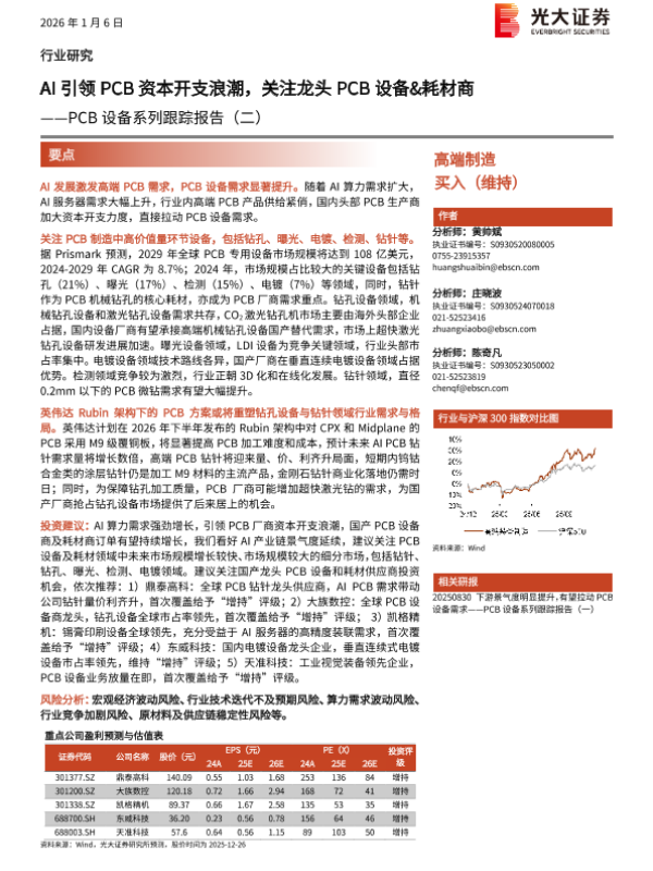 【光大证券】【202601】AI引领PCB资本开支浪潮,关注龙头PCB设备&耗材商-59页
