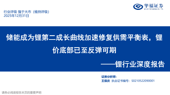 【华福证券】【202512】储能成为锂第二成长曲线加速修复供需平衡表,锂价底部已至反弹可期-42页