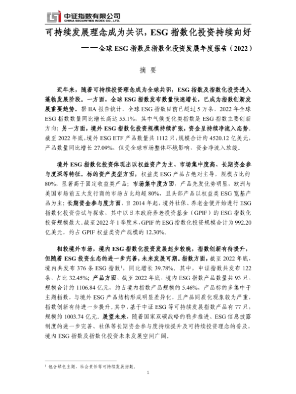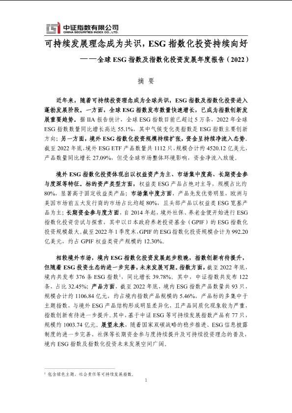 【中证指数】【20220101】可持续发展理念成为共识,ESG指数化投资持续向好-全球 ESG 指数及指数化投资发展年度报告(2022)-20页