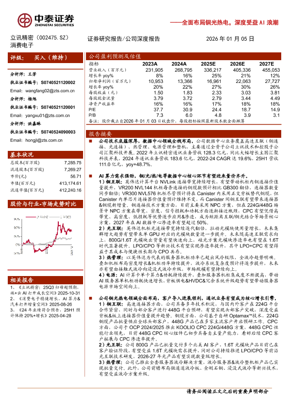 【中泰证券】【202601】立讯精密:全面布局铜光热电,深度受益AI浪潮-30页