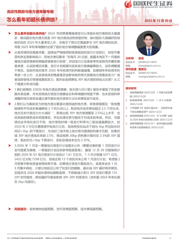 【国联民生证券】【202512】流动性跟踪与地方债策略专题:怎么看年初超长债供给?-22页