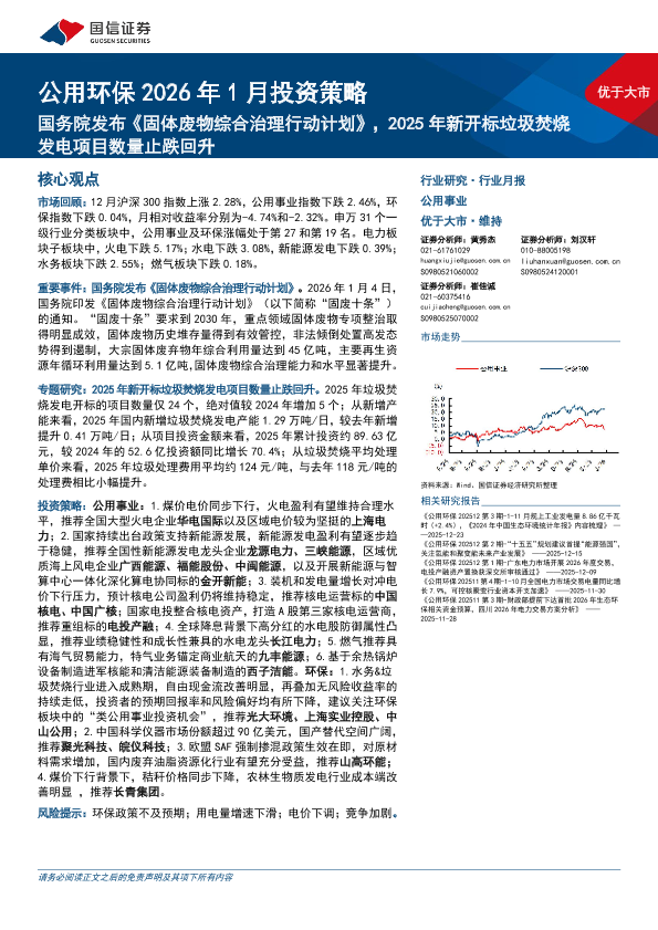 【国信证券】【202601】公用环保2026年1月投资策略:国务院发布《固体废物综合治理行动计划》,2025年新开标垃圾焚烧发电项目数量止跌回升-31页