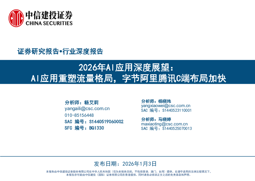 【中信建投证券】【202601】2026年AI应用深度展望:AI应用重塑流量格局,字节阿里腾讯C端布局加快-53页