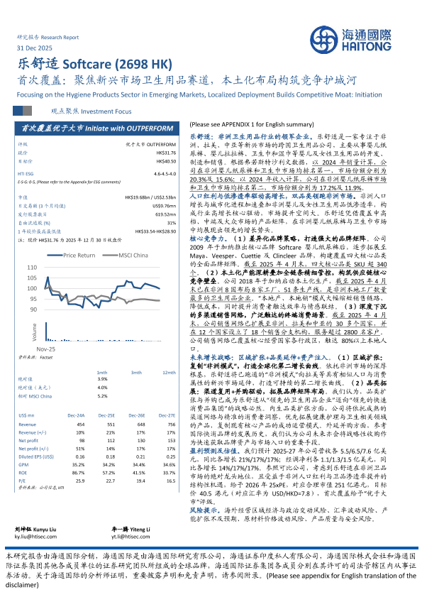 【海通国际】【202512】乐舒适(2698 HK)首次覆盖:聚焦新兴市场卫生用品赛道,本土化布局构筑竞争护城河-33页