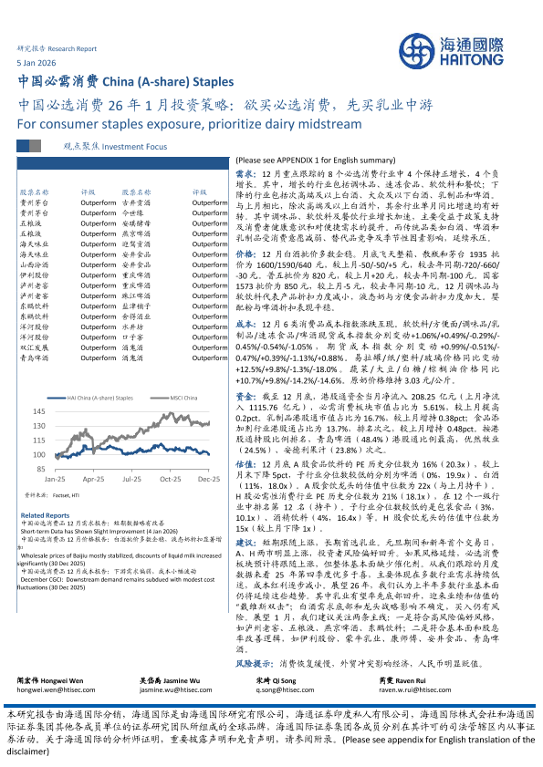 【海通国际】【202601】中国必选消费 26年 1月投资策略:欲买必选消费,先买乳业中游-40页
