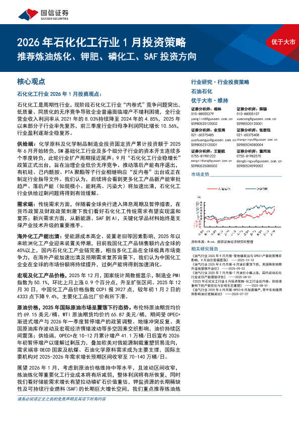 【国信证券】【202601】2026年石化化工行业1月投资策略:推荐炼油炼化、钾肥、磷化工、SAF投资方向-35页