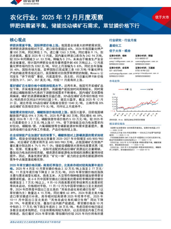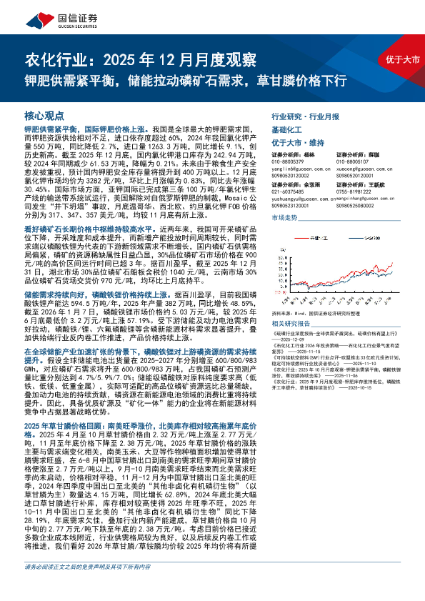 【国信证券】【202512】农化行业:2025年12月月度观察,钾肥供需紧平衡,储能拉动磷矿石需求,草甘膦价格下行-32页