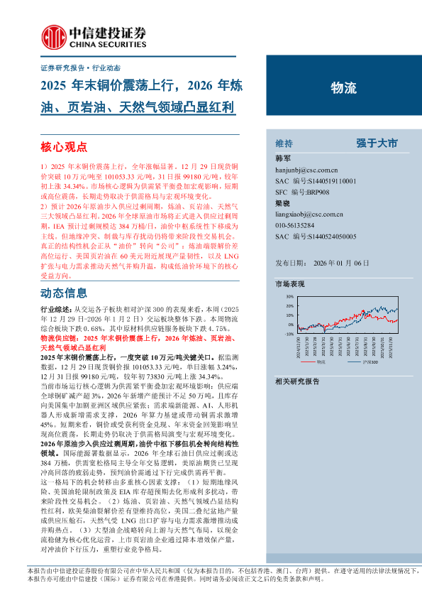 【中信建投证券】【202601】物流行业:2025年末铜价震荡上行,2026年炼油、页岩油、天然气领域凸显红利-14页