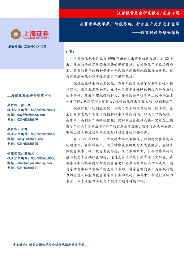 【上海证券】【202601】公募费率改革第三阶段落地,行业生产关系迎来变革——政策解读与影响探析-15页