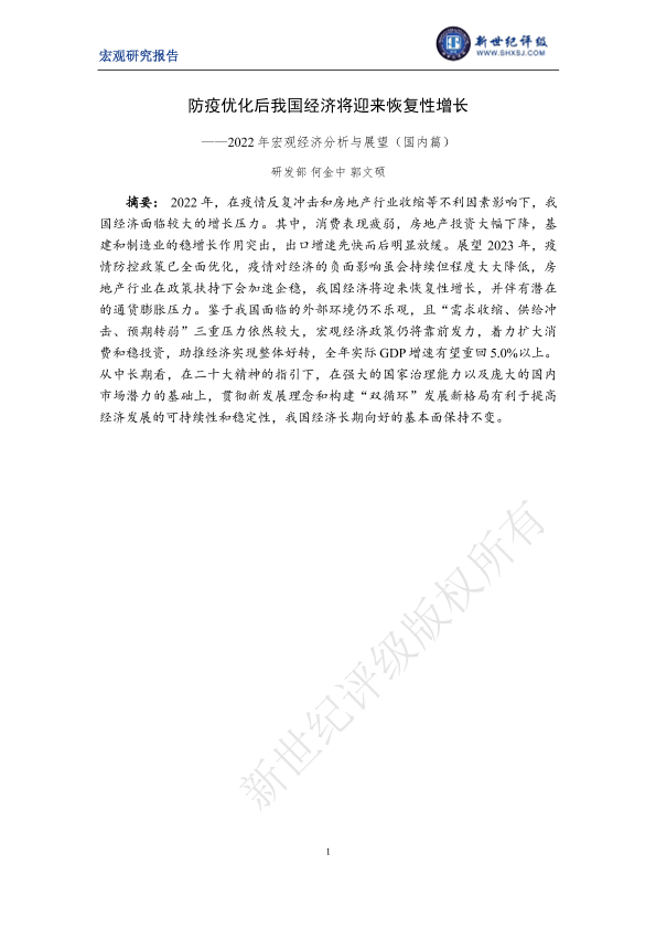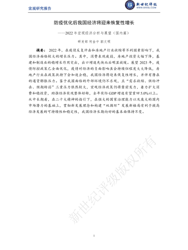 【新世纪评级】【20220101】防疫优化后我国经济将迎来恢复性增长——2022年宏观经济分析与展望(国内篇)-21页