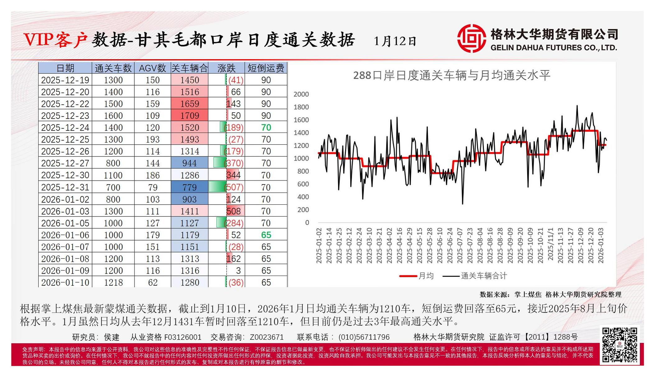 【格林大华期货研究院】【202601】VIP客户数据-甘其毛都口岸日度通关数据1月12日-1页