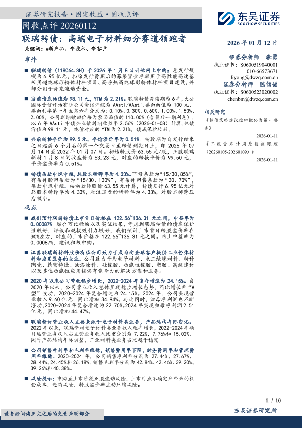 【东吴证券】【202601】联瑞转债:高端电子材料细分赛道领跑者-10页