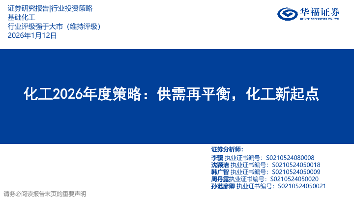 【华福证券】【202601】化工2026年度策略:供需再平衡,化工新起点-52页