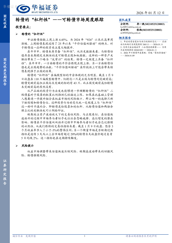 【华福证券】【202601】转债的“杠杆性”——可转债市场周度跟踪-7页