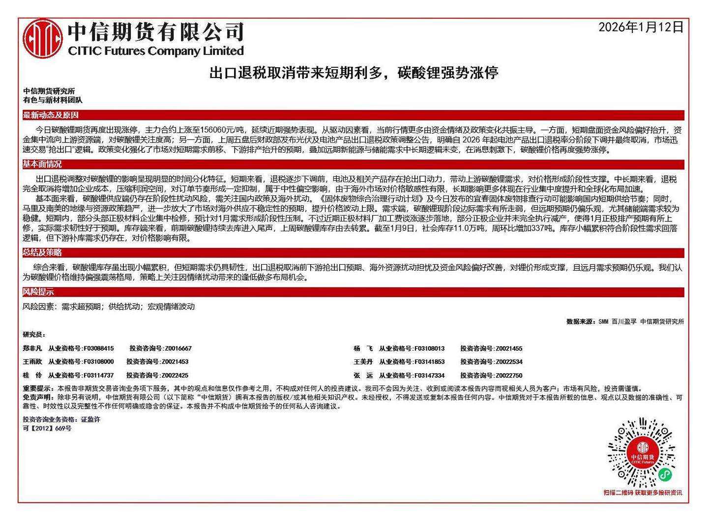 【中信期货】【202601】出口退税取消带来短期利多,碳酸锂强势涨停-1页