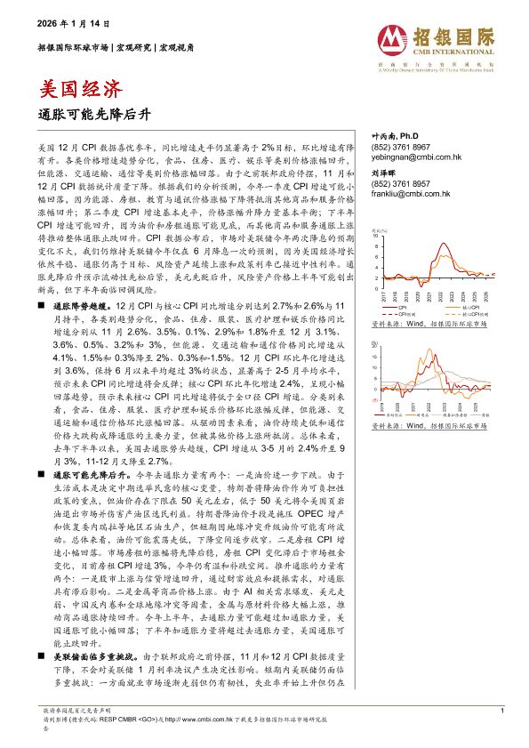 【招银国际环球市场】【2024】美国经济通胀可能先降后升-6页