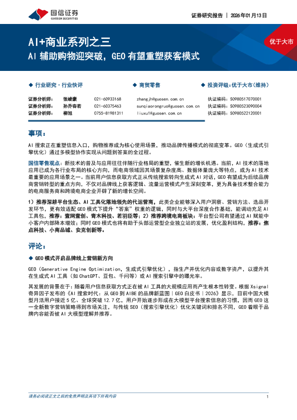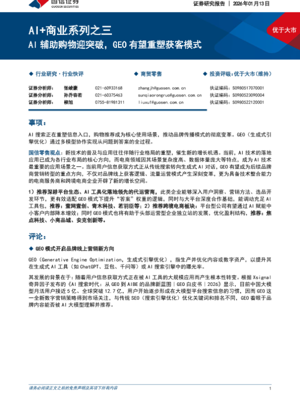【国信证券】【202601】AI+商业系列之三_AI辅助购物迎突破_GEO有望重塑获客模式-9页