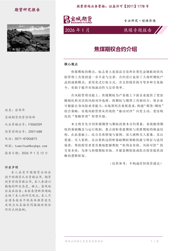 【宝城期货投资咨询部】【202601】焦煤期权合约介绍-8页