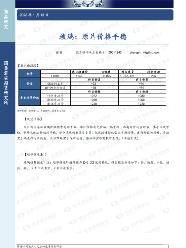 【国泰君安期货】【202601】玻璃:原片价格平稳-2页