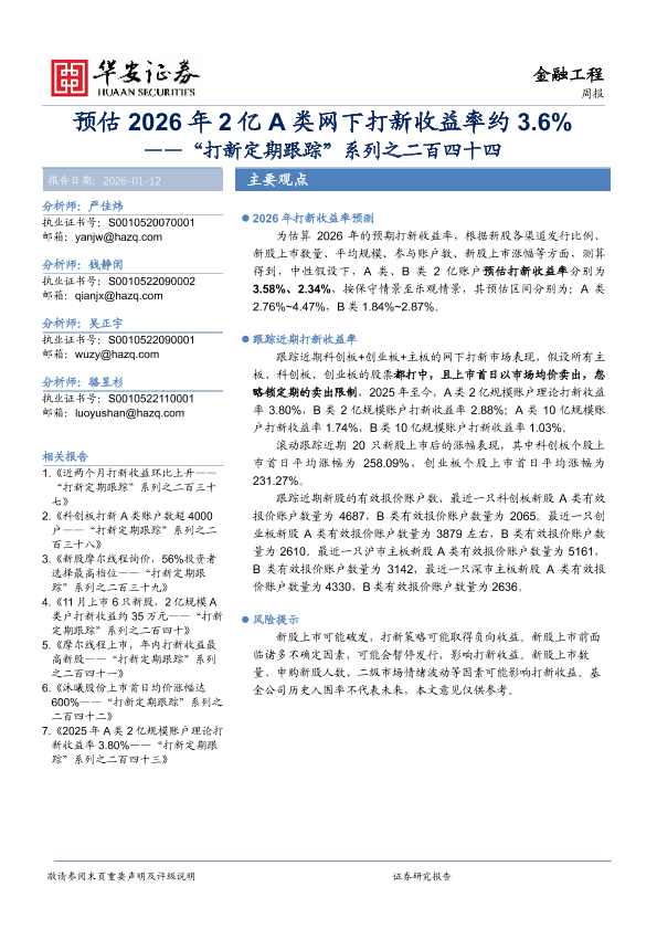 【华安证券】【202601】预估2026年2亿A类网下打新收益率约3.6%-16页