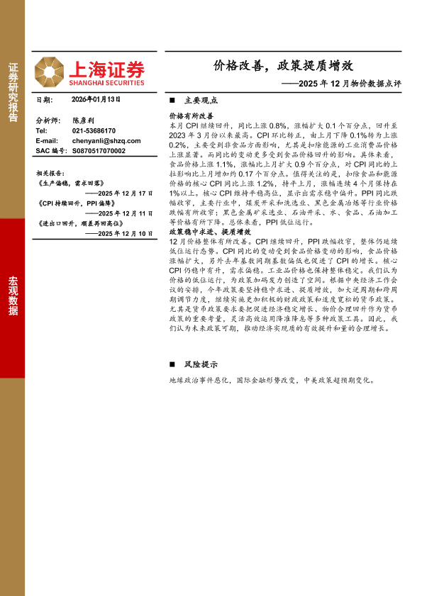 【上海证券】【202601】2025年12月物价数据点评_价格改善_政策提质增效-9页