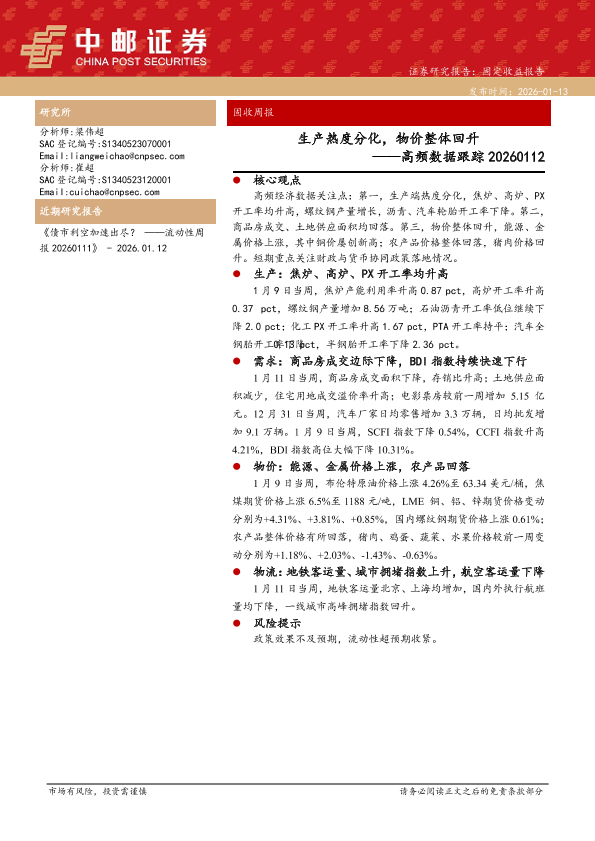 【中邮证券】【202601】生产热度分化,物价整体回升——高频数据跟踪 20260112-13页