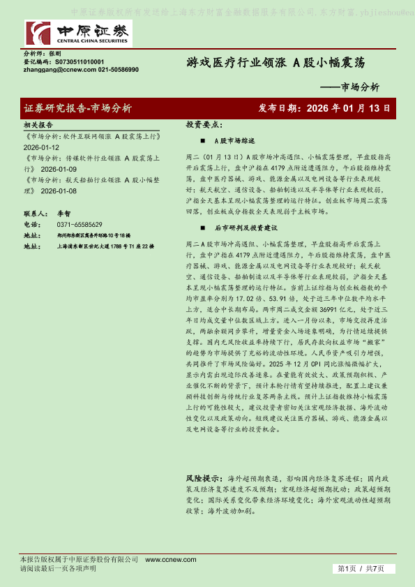 【中原证券】【202601】游戏医疗行业领涨 A股小幅震荡-7页