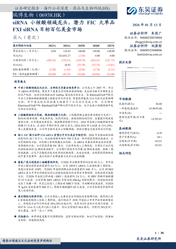 【东吴证券】【202601】瑞博生物(06938.HK)siRNA小核酸领域龙头,潜力 FIC大单品 FXI siRNA目标百亿美金市场-30页