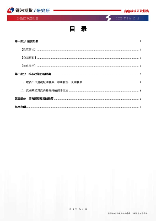【银河期货】【202601】多晶硅专题报告 反垄断 取消出口退税构建市场化、法制化反内卷格局-7页