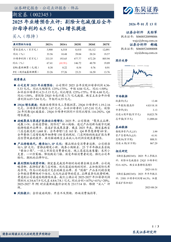 【东吴证券】【202601】2025年业绩预告点评:剔除女包减值后全年归母净利约6.5亿,Q4增长提速-3页