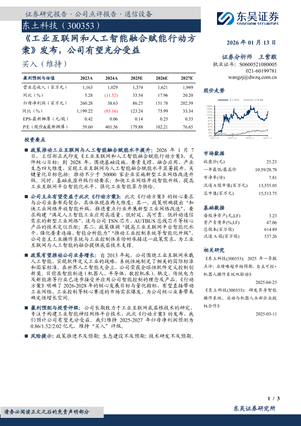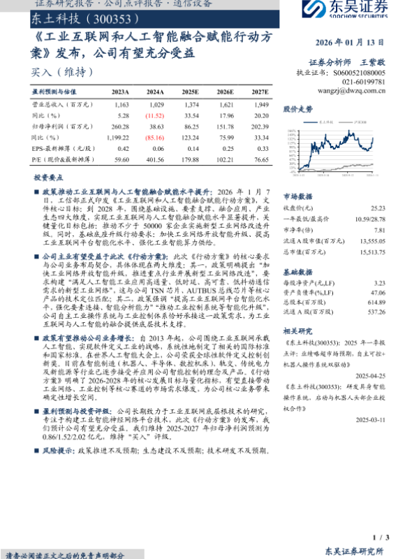 【东吴证券】【202601】《工业互联网和人工智能融合赋能行动方案》发布,公司有望充分受益-3页