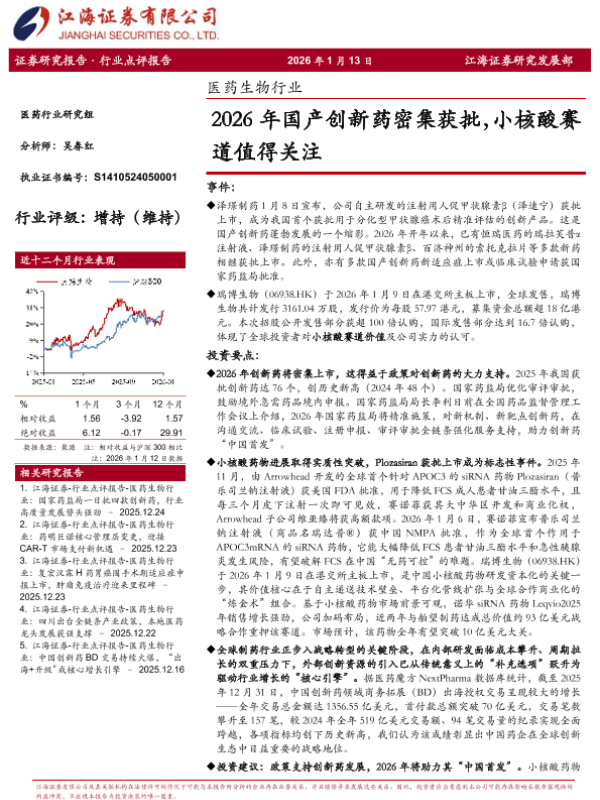 【江海证券】【202512】医药生物行业_2026年国产创新药密集获批_小核酸赛道值得关注-4页