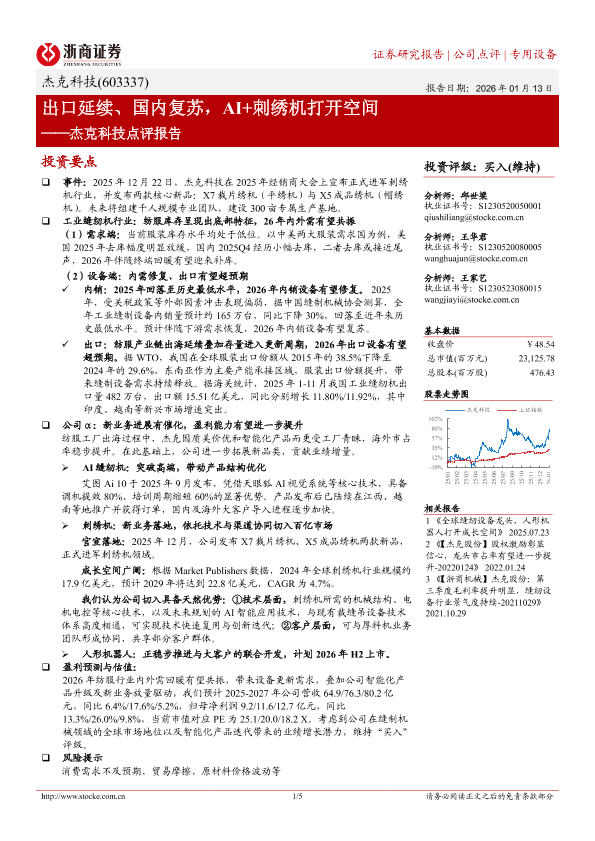 【浙商证券】【2025】出口延续、国内复苏,AI+刺绣机打开空间——杰克科技点评报告-5页