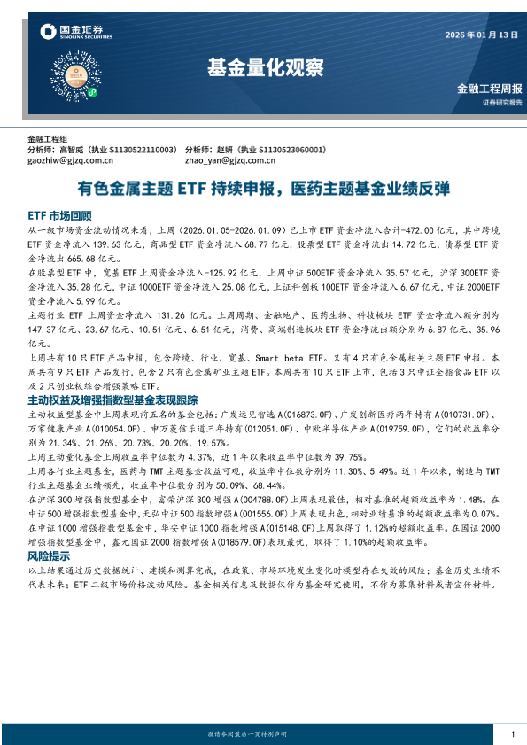 有色金属 增强策略ETF ETF 基金发行 医药主题基金