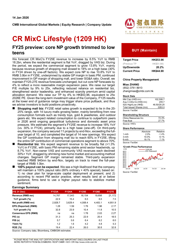 【CMB International Global Markets】【202601】CR MixC Lifestyle(1209 HK)-FY25 preview core NP growth trimmed to low teens-6页