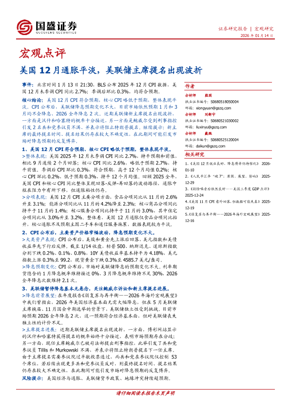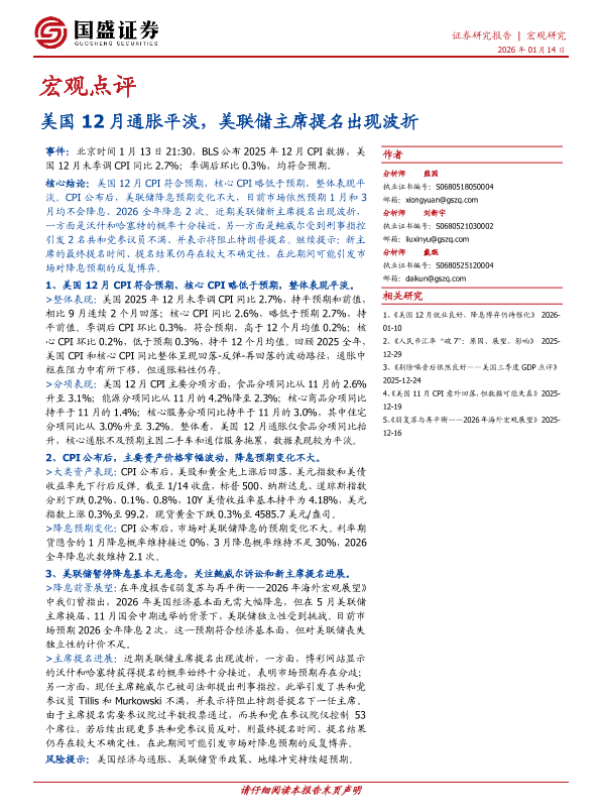 【国盛证券】【202601】美国12月通胀平淡,美联储主席提名出现波折-4页