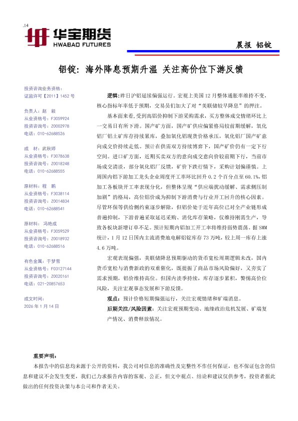 【华宝期货】【202601】铝锭_海外降息预期升温_关注高价位下游反馈-2页