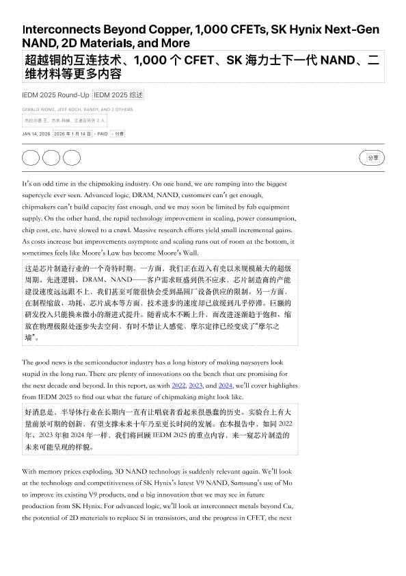 【GERALD WONG&JEFF KOCH&RANDY】【202601】超越铜的互连技术、1000个CFET、SK海力士下一代 NAND、二维材料等更多内容-41页