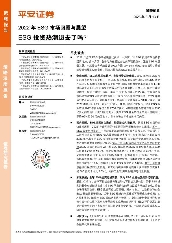 【平安证券】【20230213】2022年ESG市场回顾与展望:ESG投资热潮退去了吗?-23页