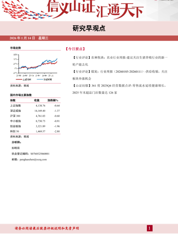 361度 煤炭行业 投资建议 宠物食品 生猪养殖