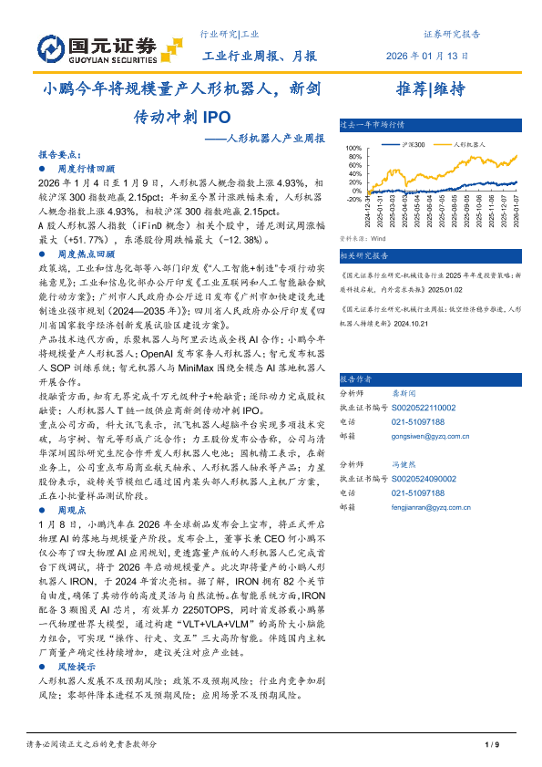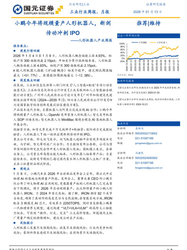 【国元证券】【202601】小鹏今年将规模量产人形机器人,新剑传动冲刺 IPO-9页
